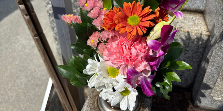 近くのスーパーで仏花とお供えを購入してからお寺に向かいました。